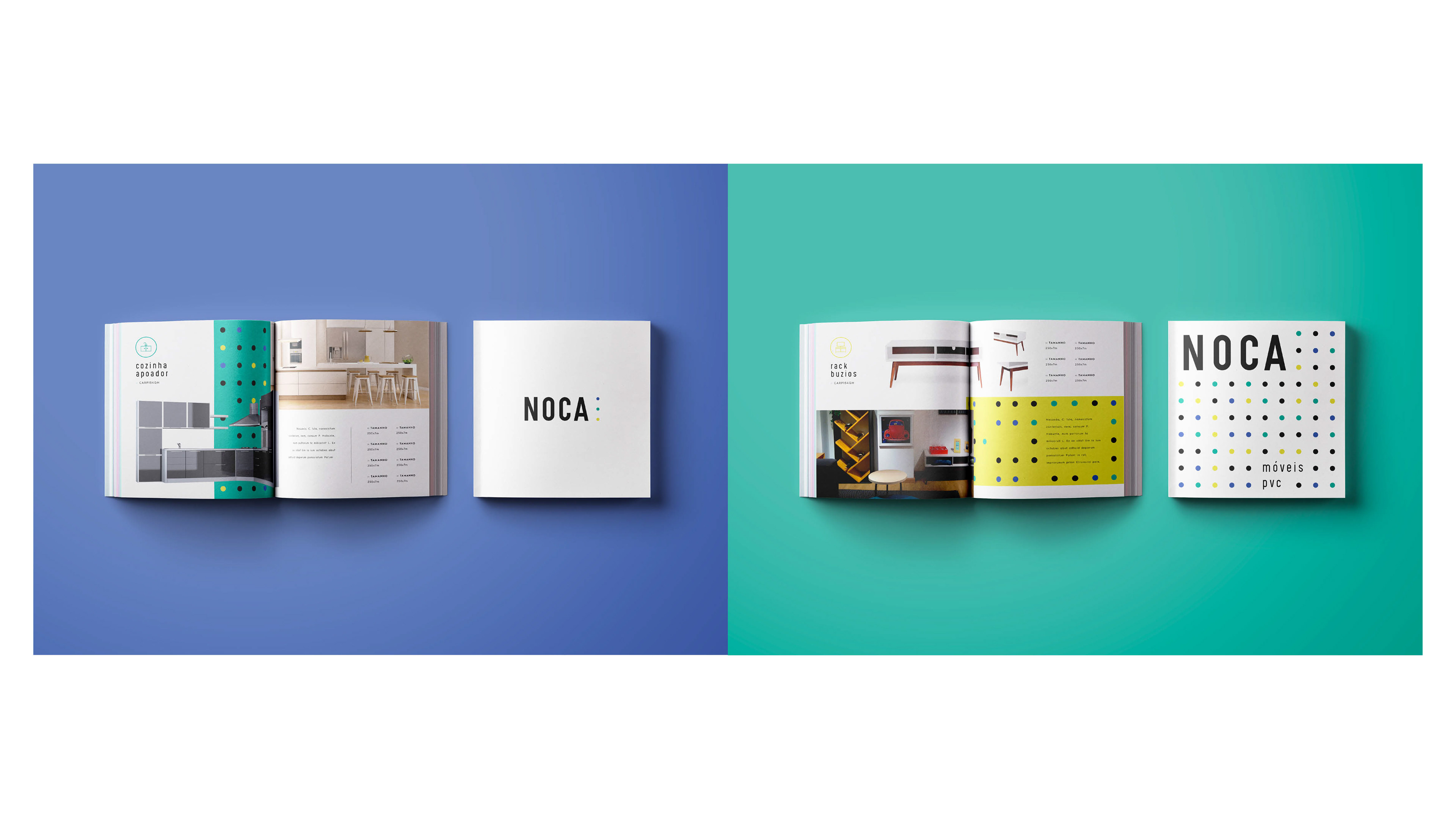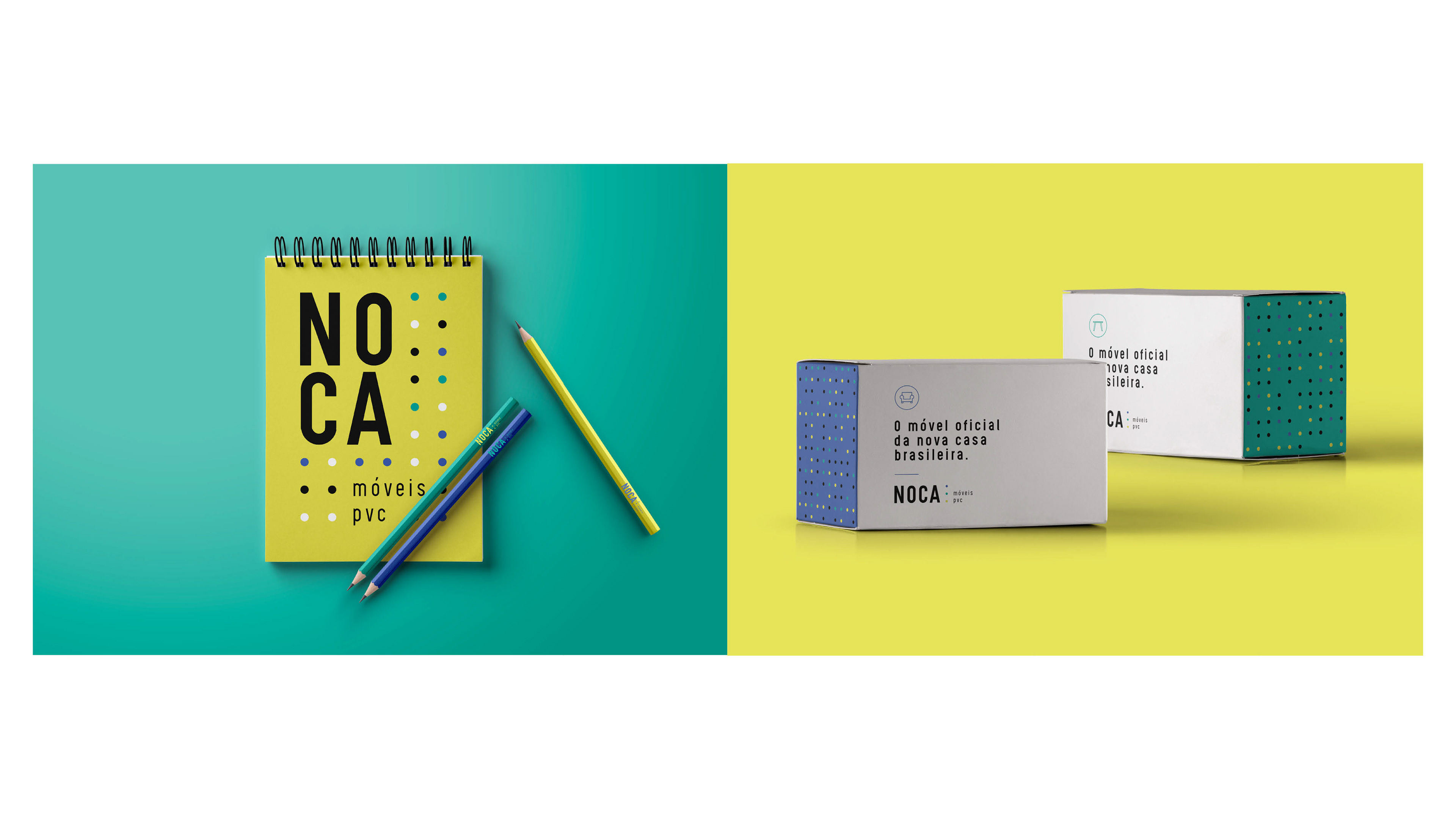 Brand identity for Brazilian-themed PVC furniture company NOCA. It has its own technology, that uses PVC particles to create wood-like appliances.