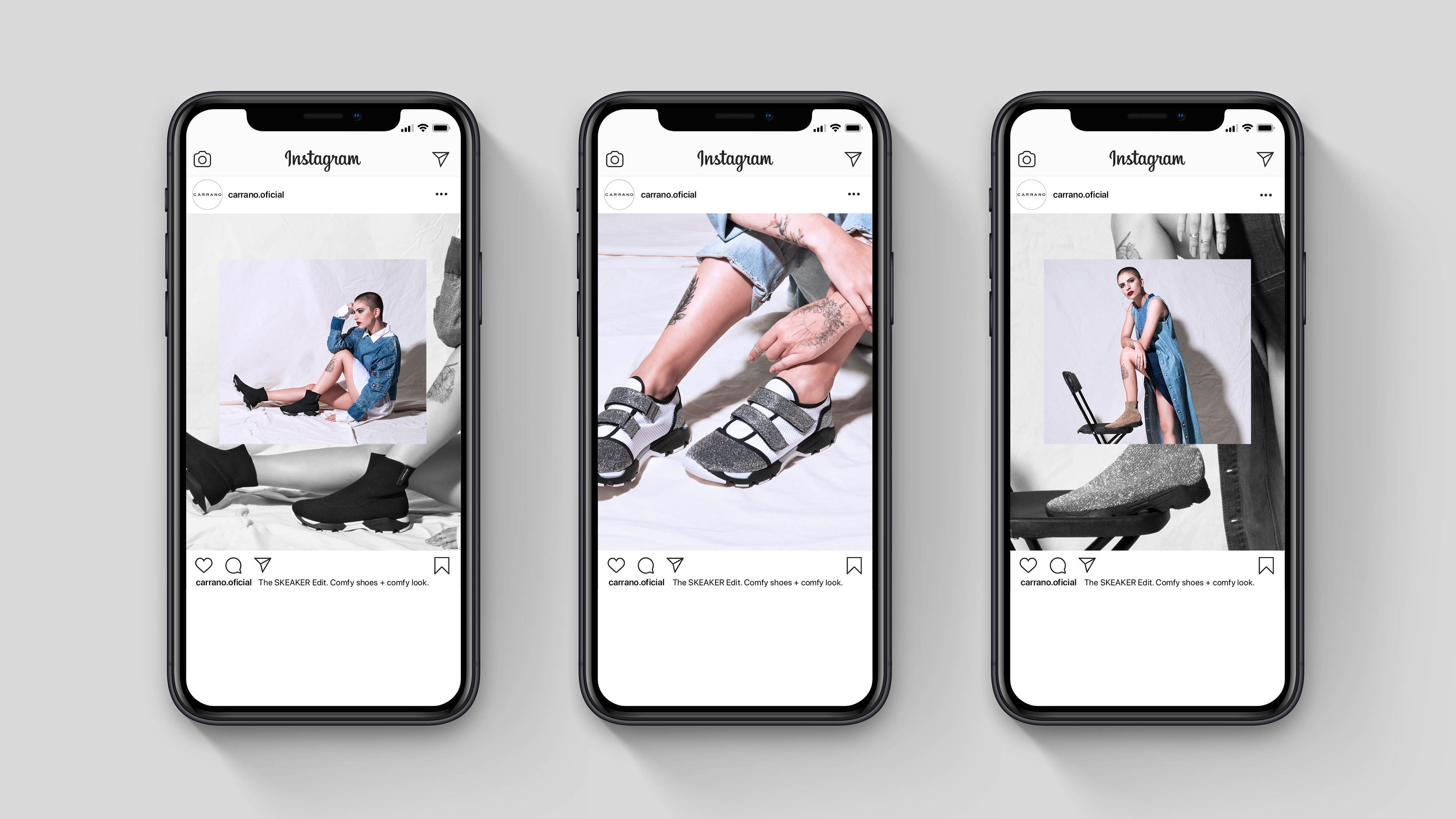 Digital campaign for social media for Carrano. The Sneaker edit for the Fall Winter collection focus on the brand's comfy and stylish shoes.